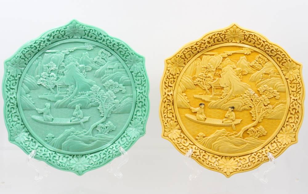 3x Zierplatten aus Kunstharz, Chinam, Hanyi Arts and Crafts Society, ca. D-26,5cm