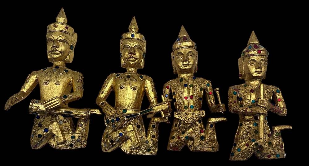 4x Tempelmusiker, Holz vergoldet, H-ca. 24 cm [1]