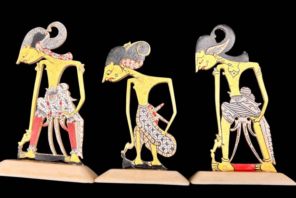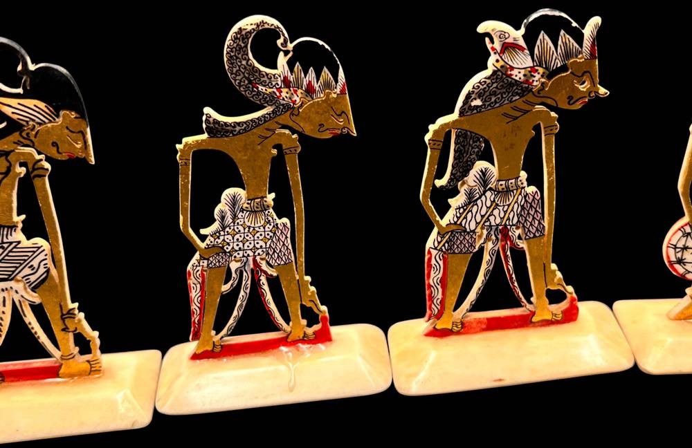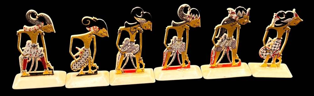 6x Wayang Kulit Figuren für Schattenspiele, Indonesien, H-ca. 7 cm, Material?
