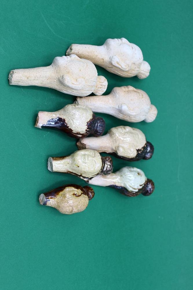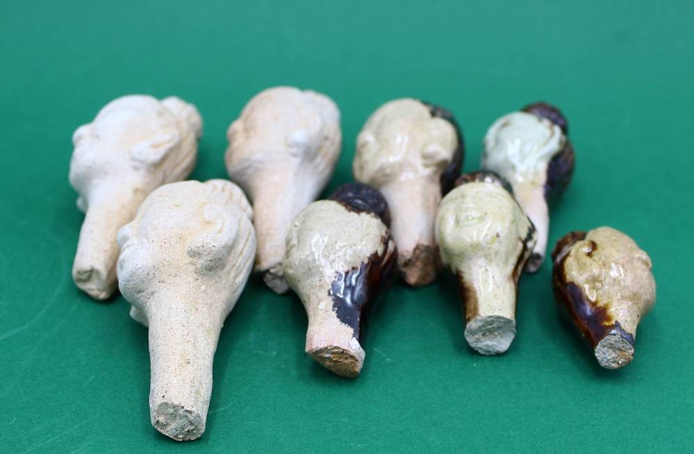 8x chinesische aufsteck-Köpfe aus Keramik, (Beijing??) max. H- 9cm (in Box)