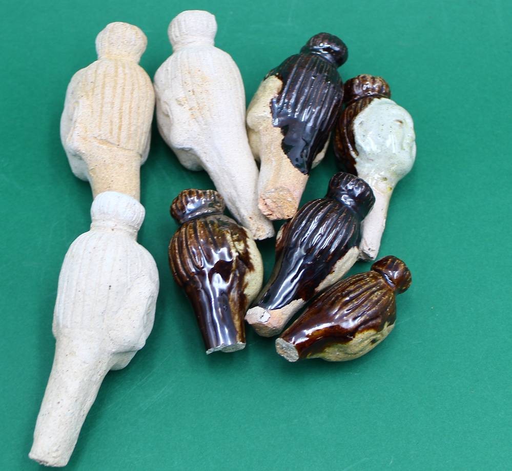 8x chinesische aufsteck-Köpfe aus Keramik, (Beijing??) max. H- 9cm (in Box) [1]
