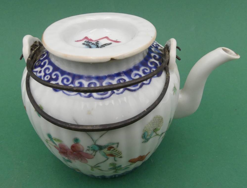 alte Tee-oder Sake-Kanne, bemalt, Altriss und minim. Chip, H-9 cm [1]