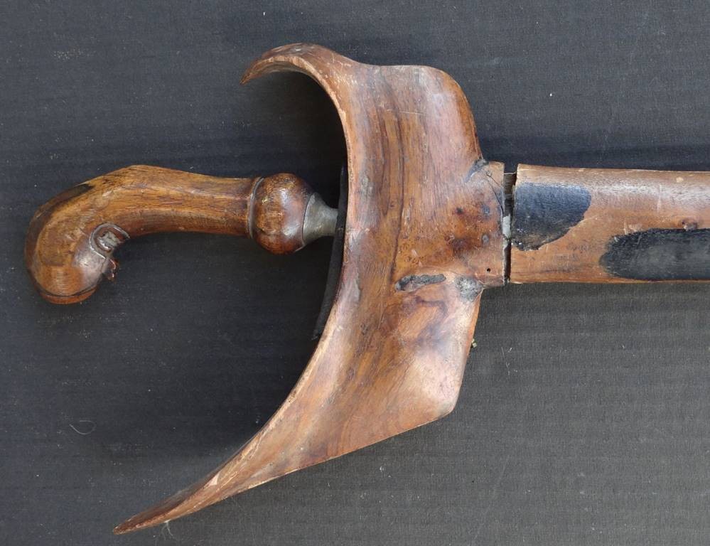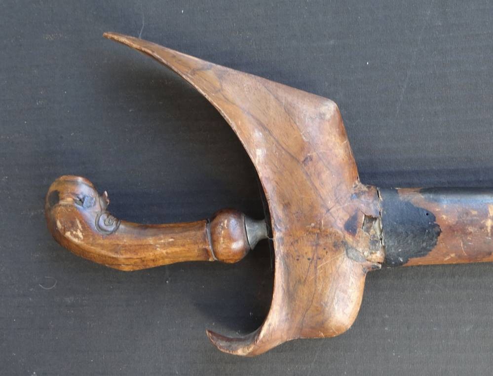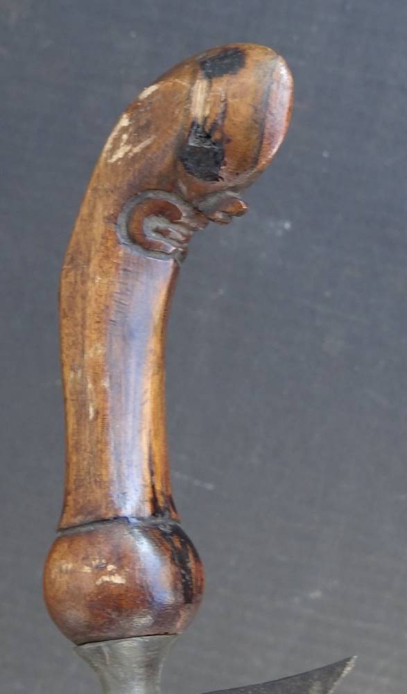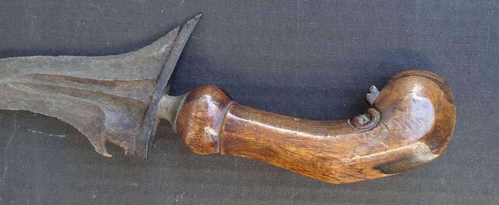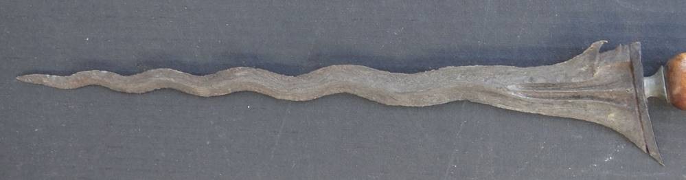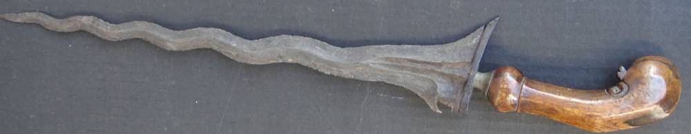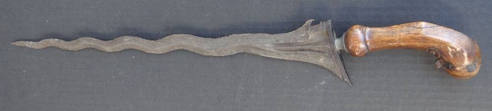 Alter Flammenkris mit Holzgriff in Holzscheide diese beschädigt, Länge ca. 52 cm [1]