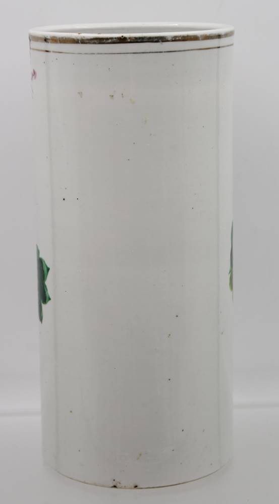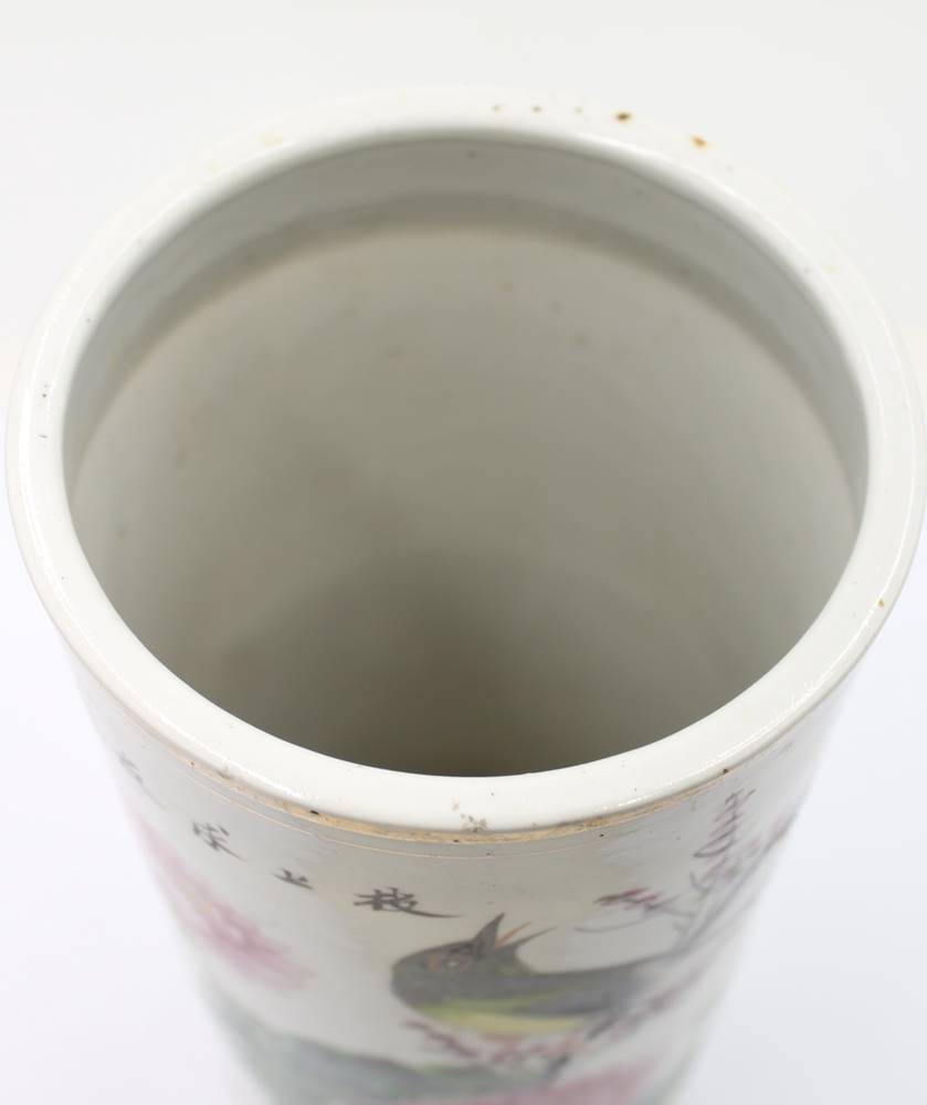 antiker Pinselhalter mit Vogel-u. Blumenbemalung sowie Schriftzeichen, Boden altrissig, H-27cm [1]