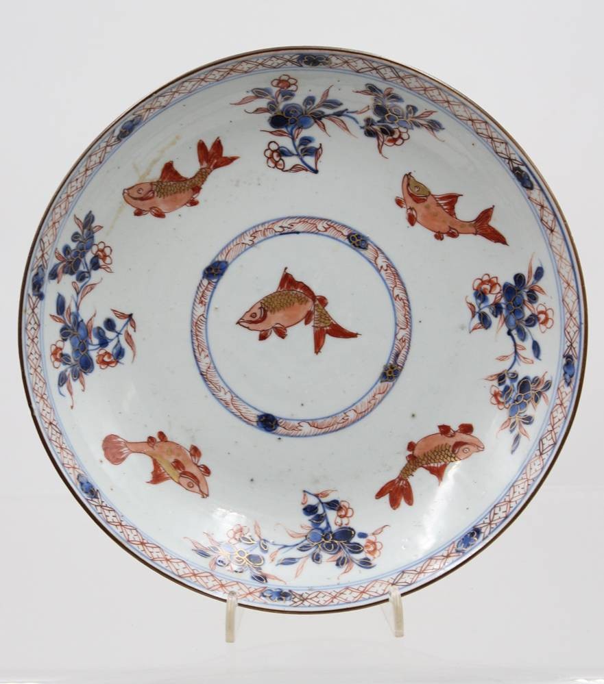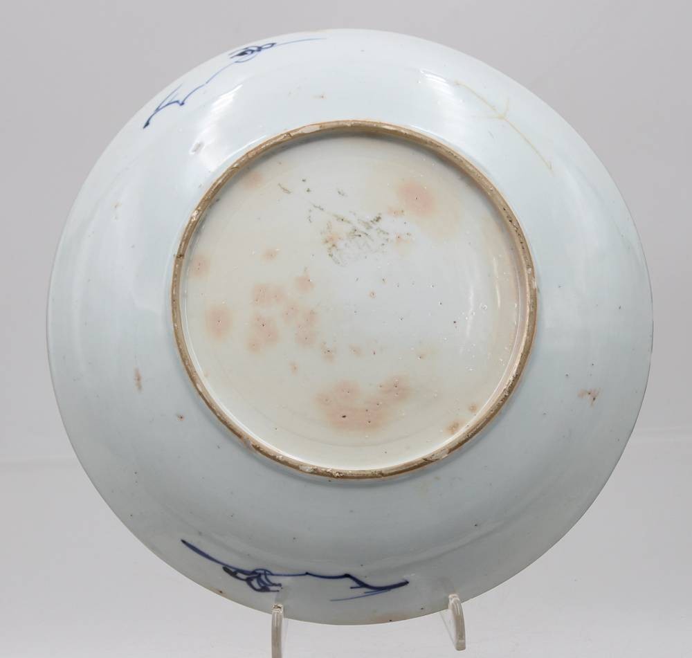 antiker Teller, China, wohl Kangxi/Qianlong-Zeit, 18. Jhd., Altersspuren, ca. D-22cm ca. H-3,5cm [1]