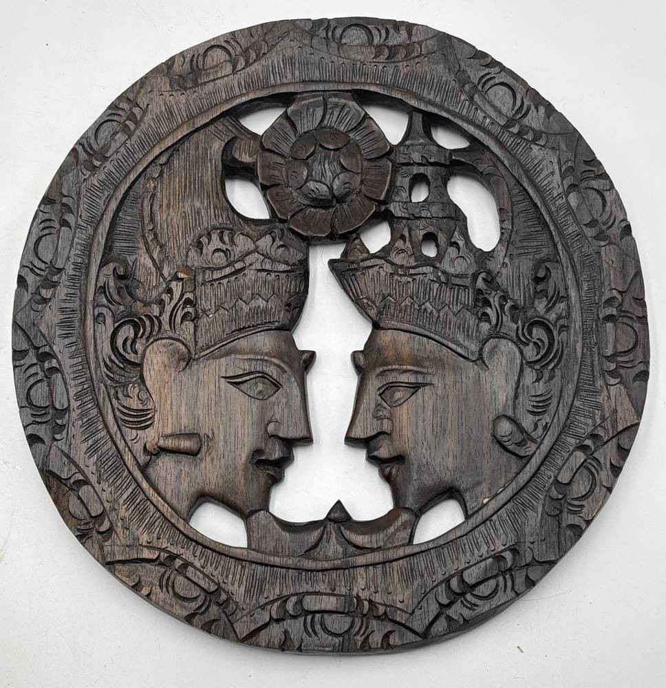 Bali Schnitzerei, 2 Gesichter, Holz, rund [1]