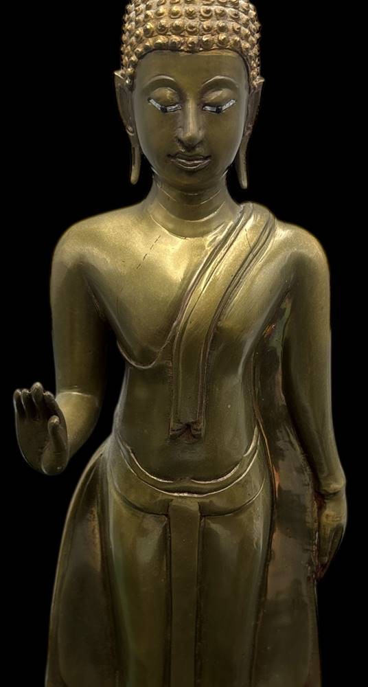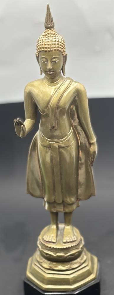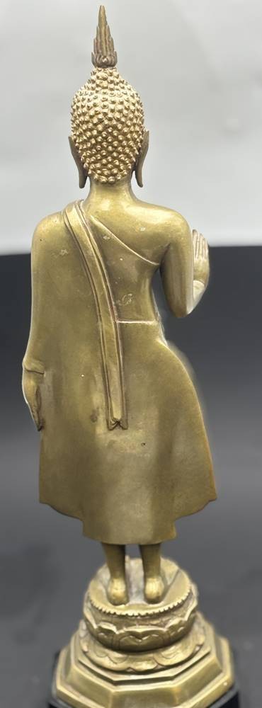 Bronze-Buddha auf Holzsockel, wohl Bali, H-47 cm, D-unten 12 cm [1]