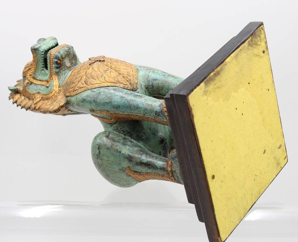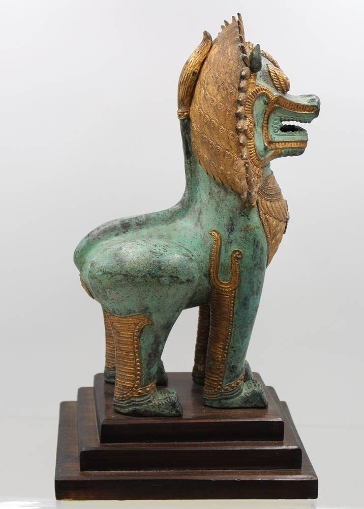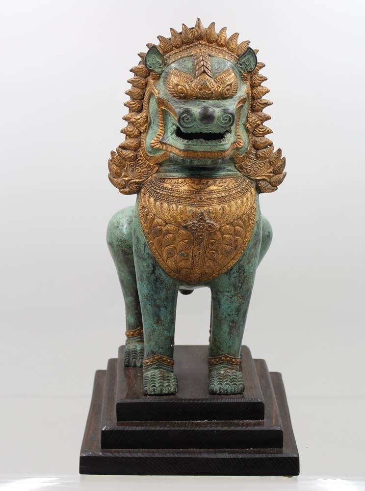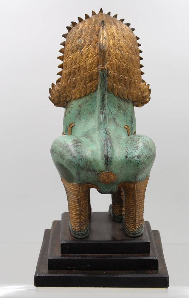 Bronze, Singha-Tempellöwe, grüne Patina, ca, H-37,5cm [1]