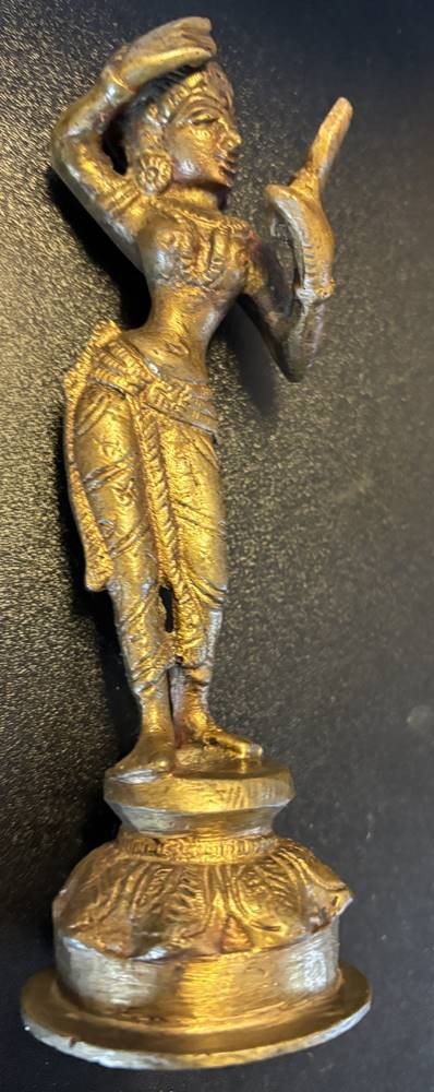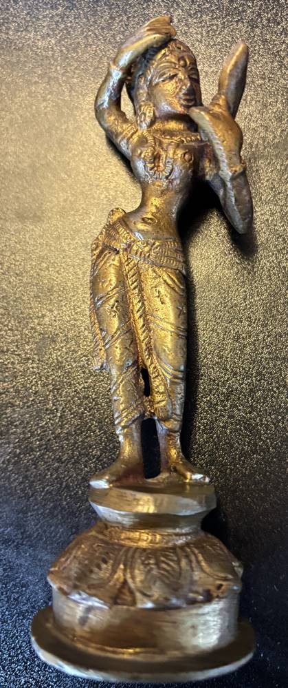Bronze Tempeltänzerin mit Handspiegel? Indien, älter, H-14 cm [1]