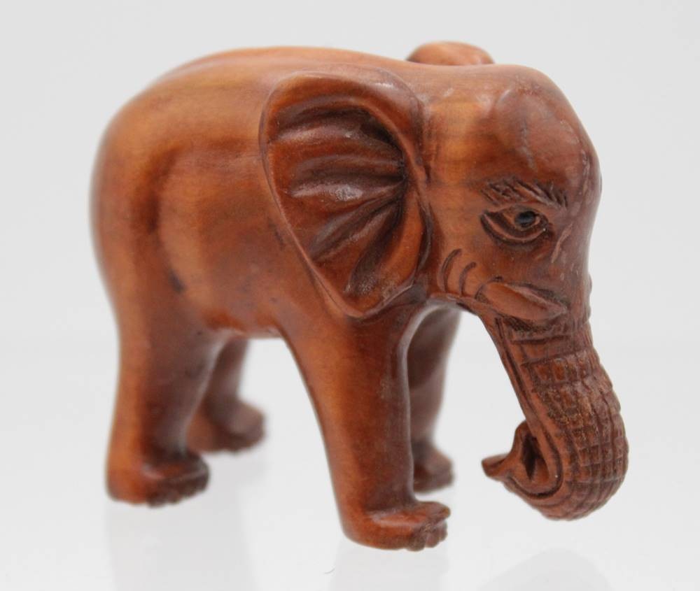Buchsbaum-Netsuke, Japan, Elefant, älter, H-4,8cm. [1]