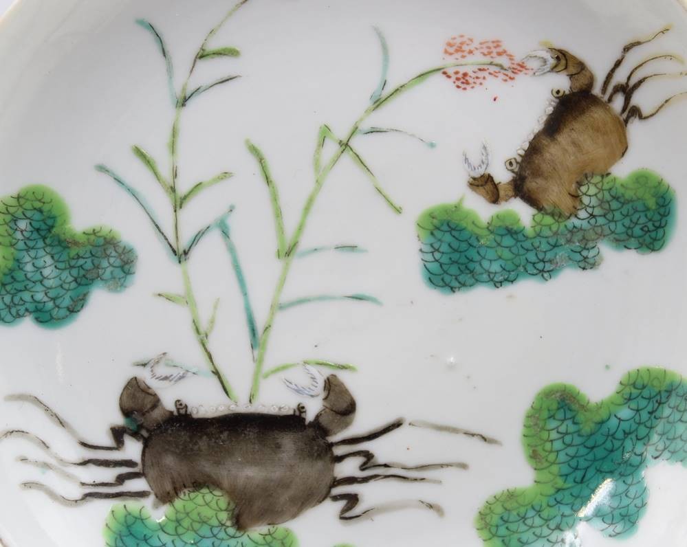 China-Teller, 109. Jhd., Krabbenbemalung, Rand mit 4 Chips, ca. H-2,6cm D-14,5cm