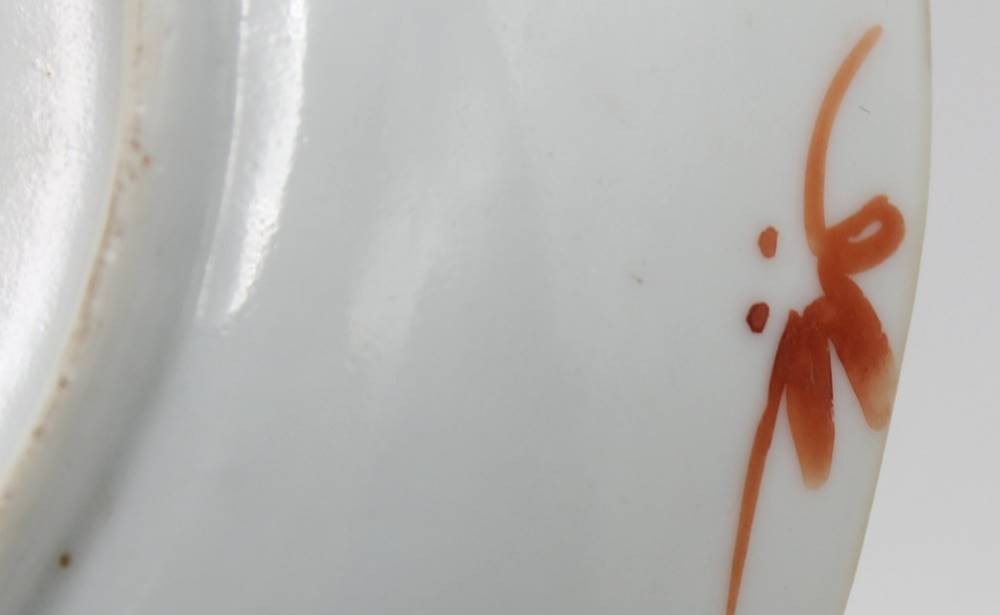 China-Teller, 109. Jhd., Krabbenbemalung, Rand mit 4 Chips, ca. H-2,6cm D-14,5cm [1]