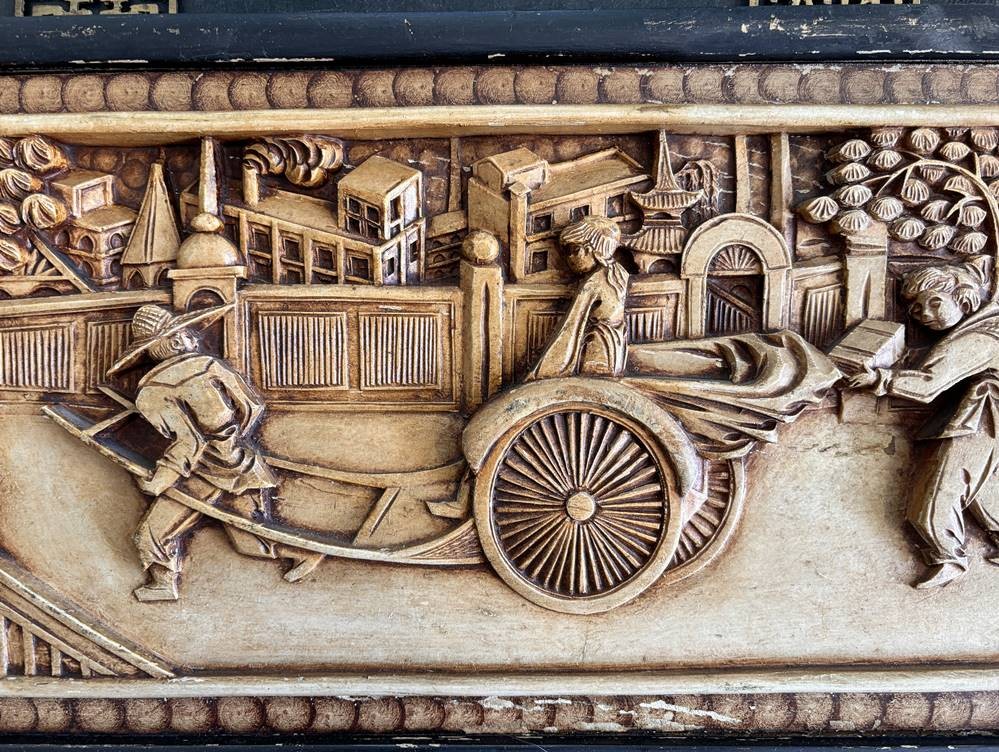 chines. Holzbild , Rikscha, Altersspuren, 24x43 cm, Messing-Halter [1]