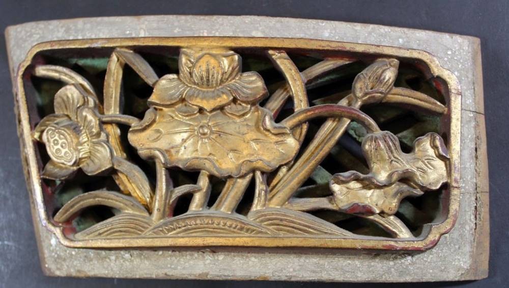 chines. Holzschnitzerei, wohl Möbelapplikation, 21x10 cm [1]