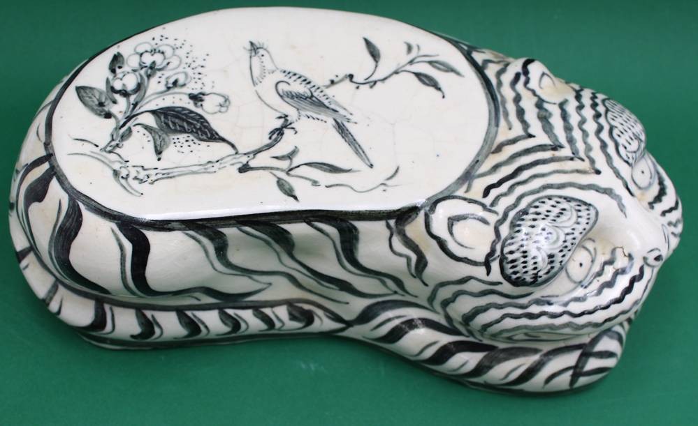 chinesisches Tiger-Kissen, Blumen- Vogeldekor, H- 9cm B- 30cm [1]