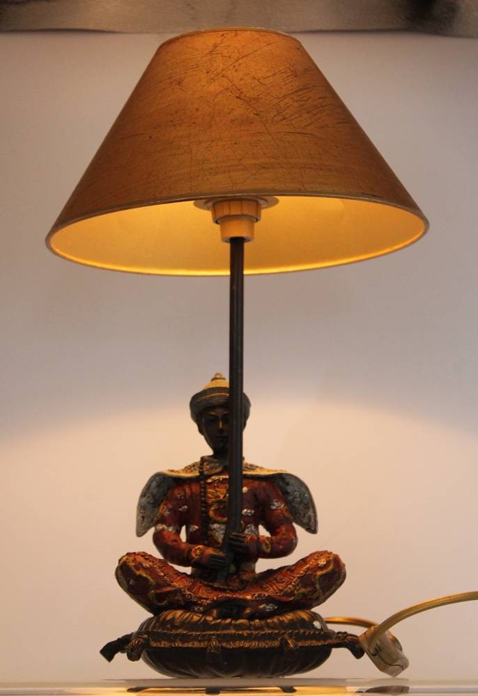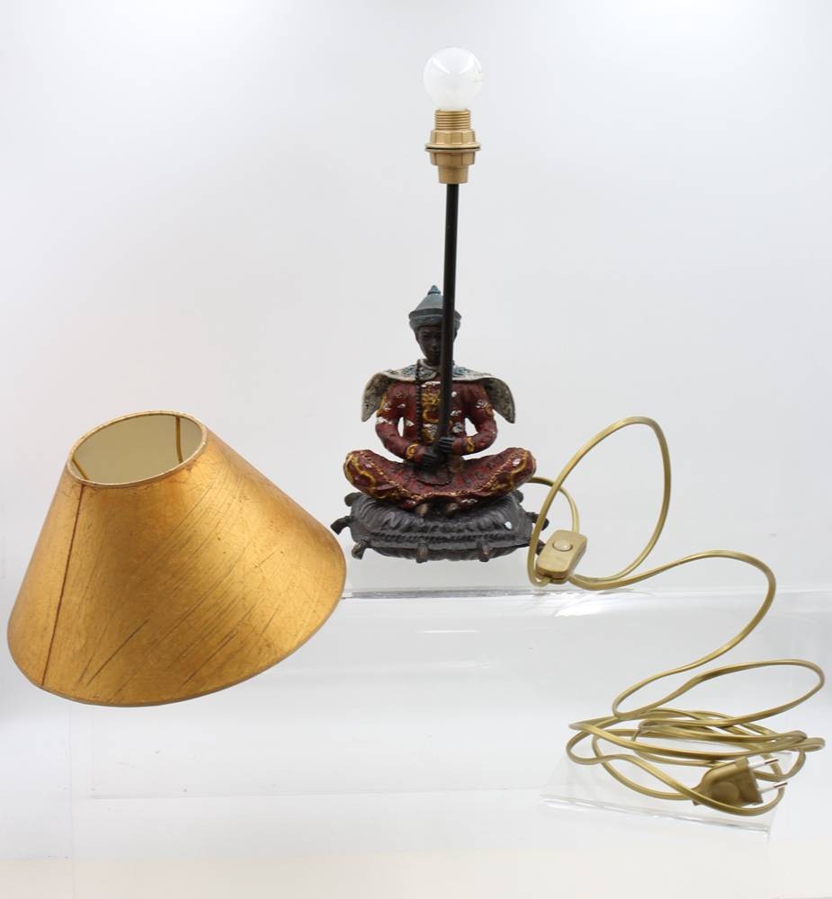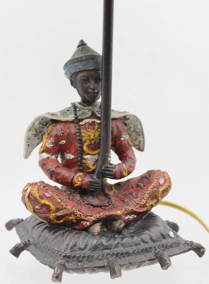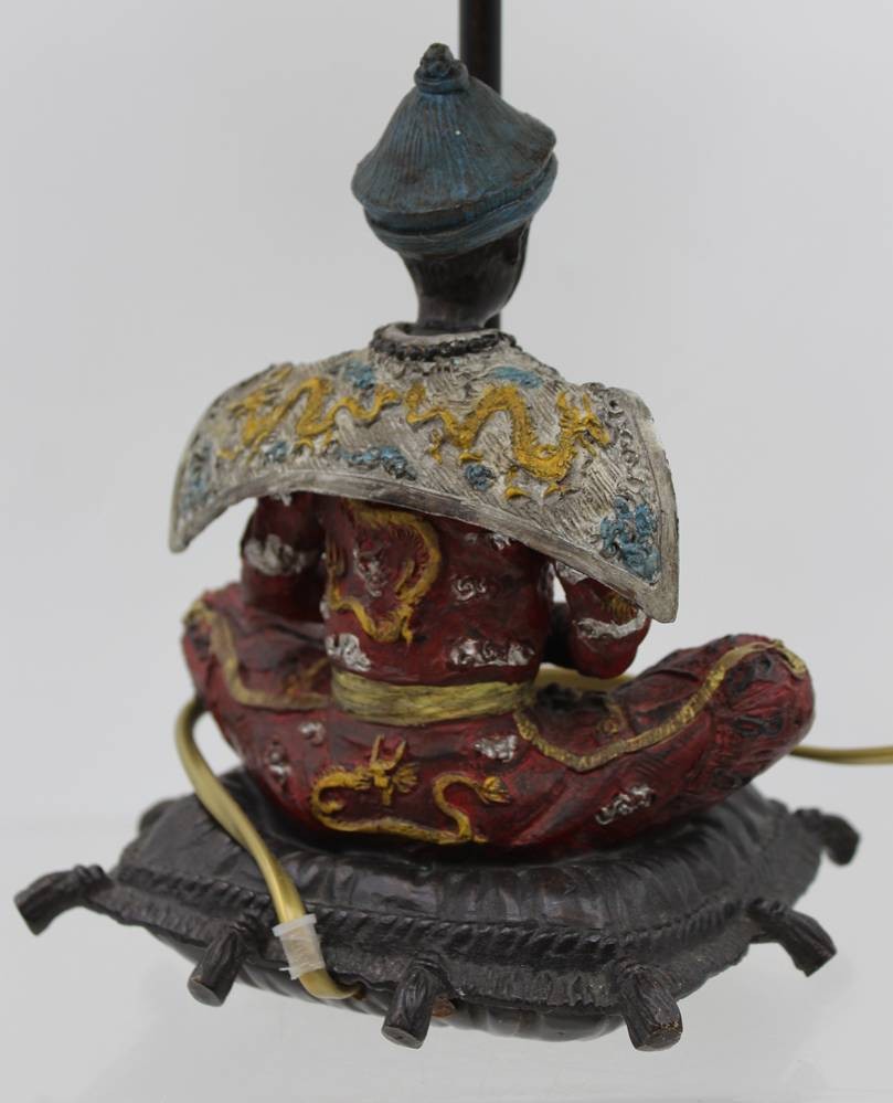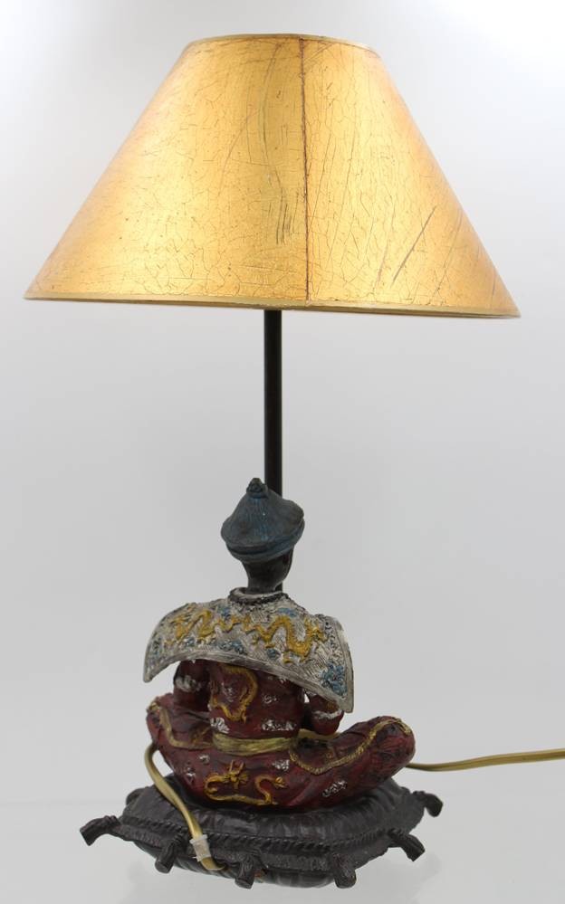figürliche Tischlampe, Bronze farbig gefasst, chin. Tempeldiener, wohl 30/40er Jahre, ca. H-41cm Figur H-19,5cm [1]