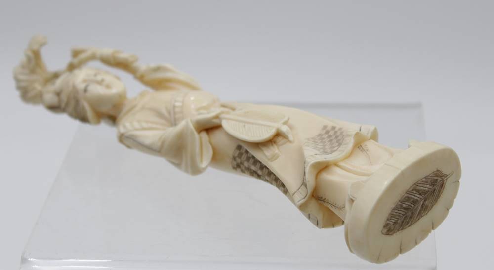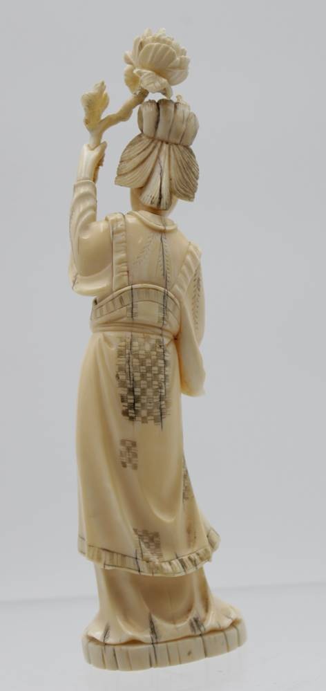 Figur, China, Dame mit Fächer und Blume, wohl um 1900, Bein, Blume geklebt, ca. H-21cm [1]