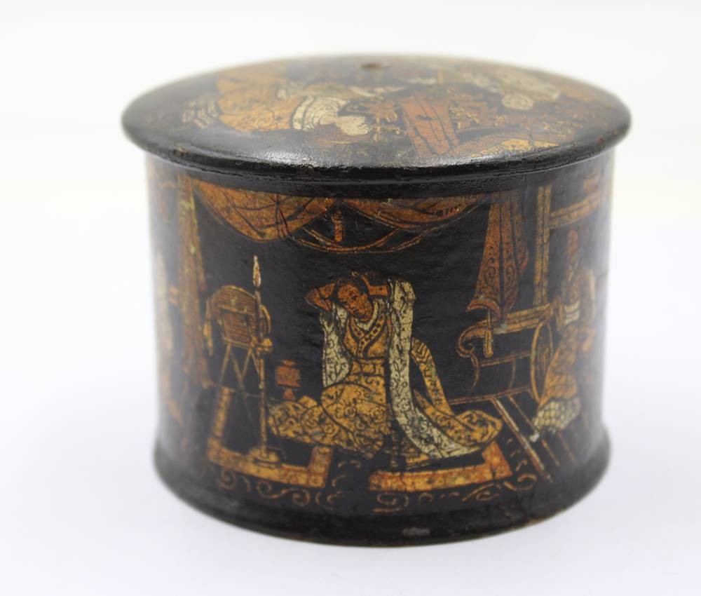 Garn-Dose, China, Lackarbeit, älter, ca. H.-7,5cm [1]