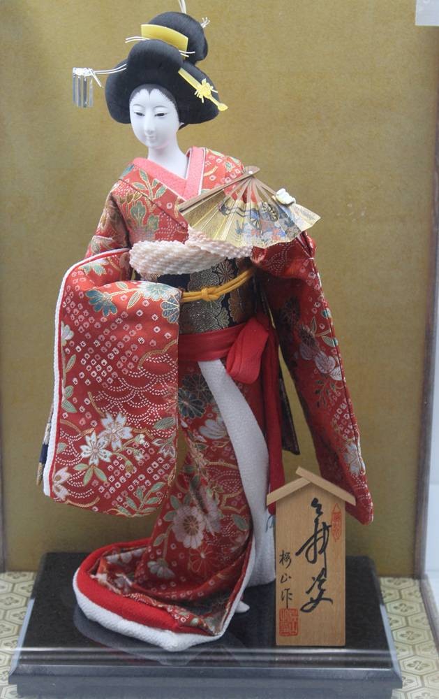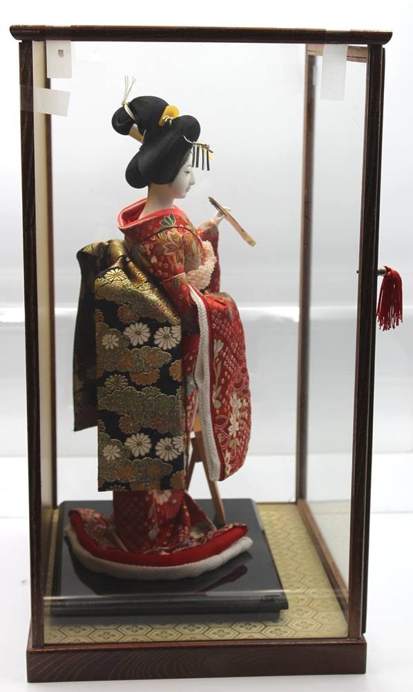 Geisha-Puppe in Schaukasten, wohl 50/60er Jahre, Kasten H-55cm B-38cm T-29cm [1]