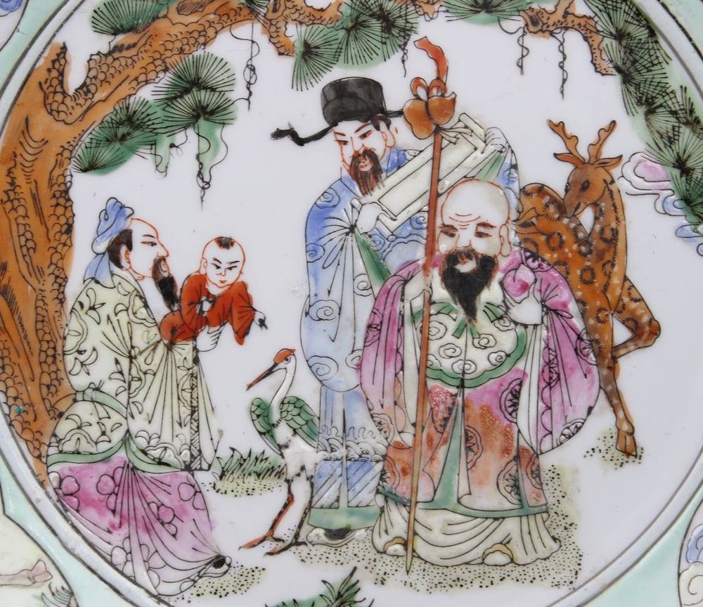 gr. Ansichternteller, China, rote Marke, älter, ca. H-6cm D-35,5cm