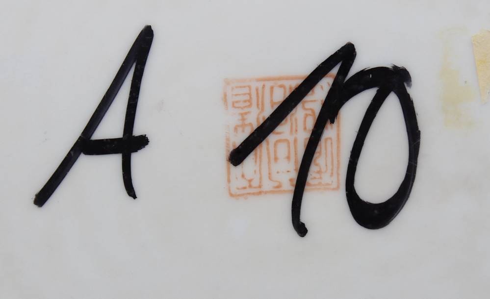 gr. Ansichternteller, China, rote Marke, älter, ca. H-6cm D-35,5cm [1]