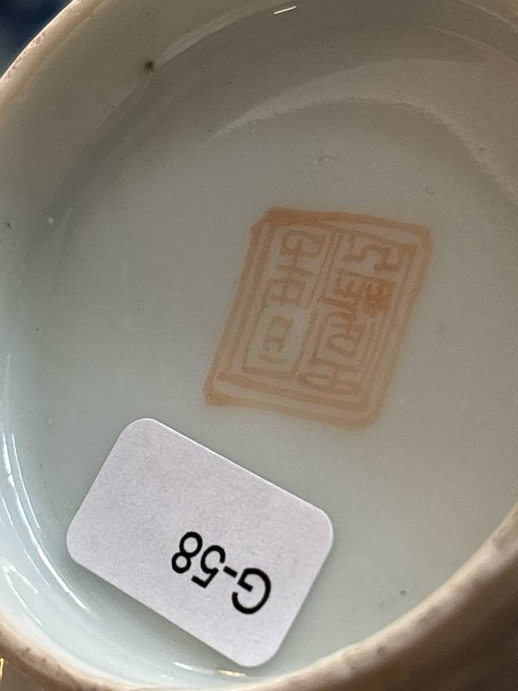 gr. China Tasse, floral bemalt, in Boden rote Marke, H-5,5 cm, D-11 cm [1]