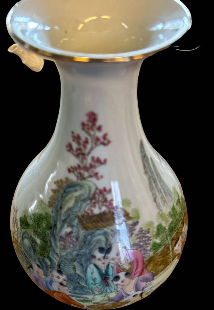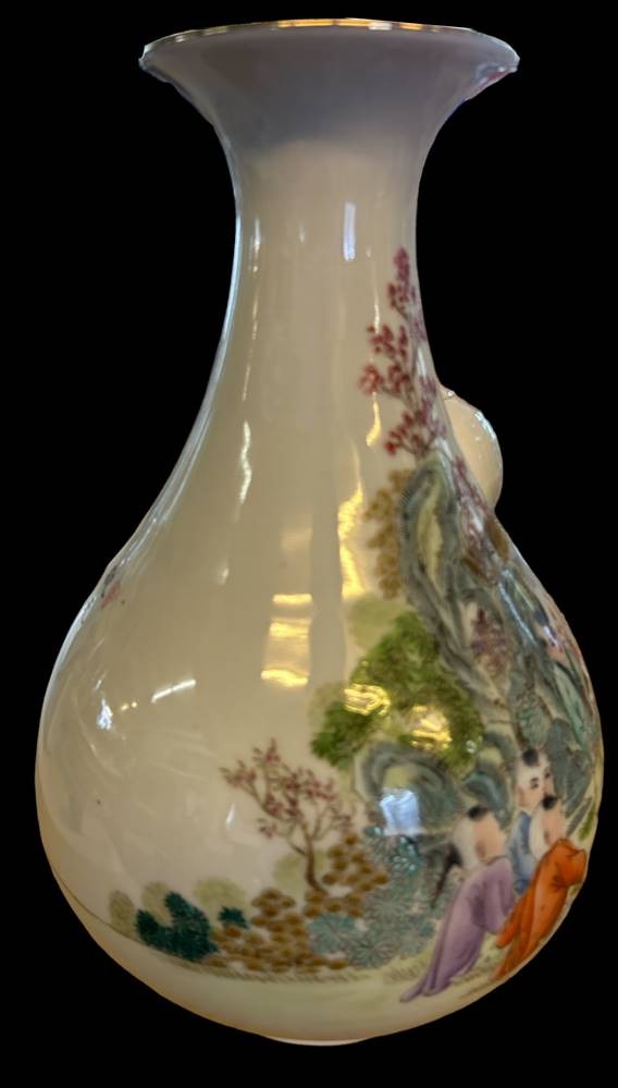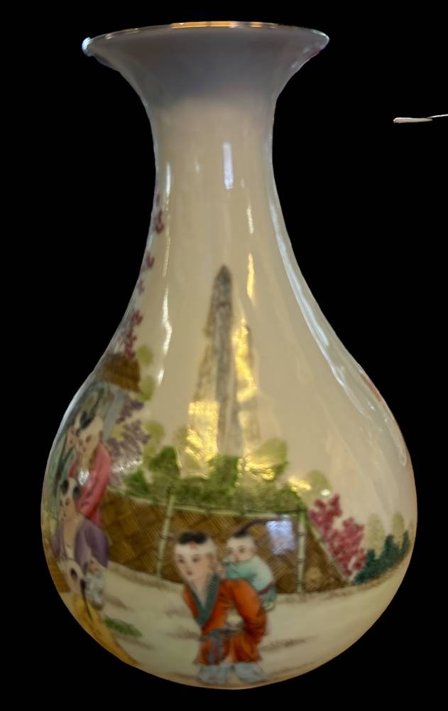 gr. China-Vase mit figürl. Bemalung, Mah Jong Spieler, verso chinesisch beschriftet, rote Bodenmarke, wohl 19.Jhd., H-29 cm [1]