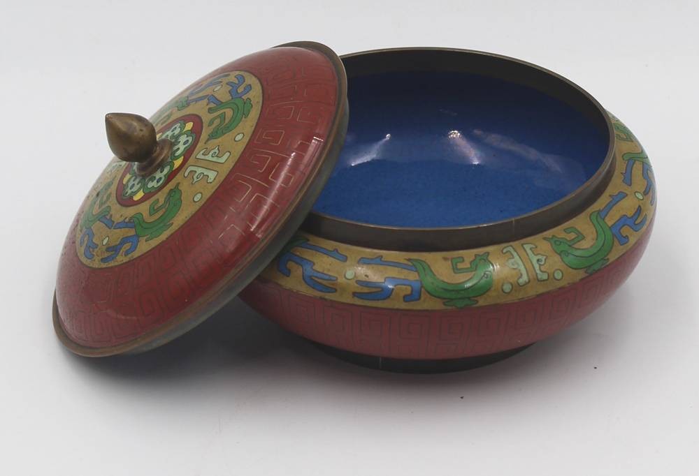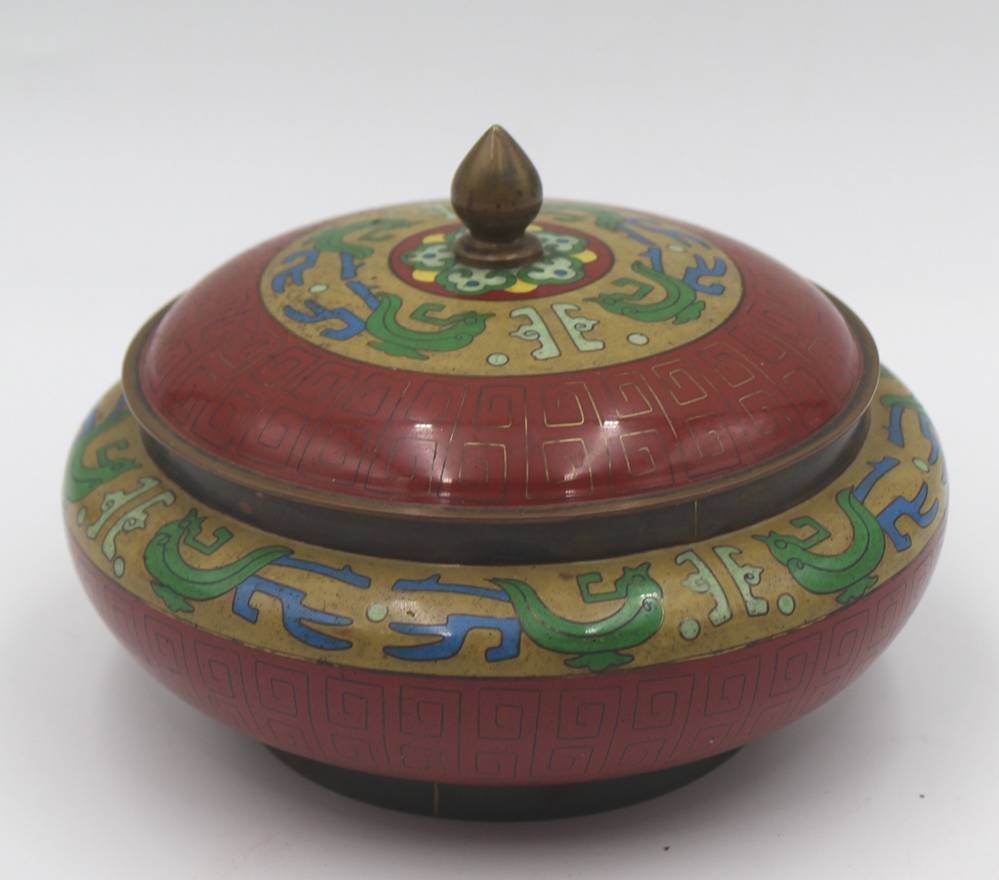gr. Cloissone-Deckeldose, guter Zustand, H-10 cm, D-16 cm [1]