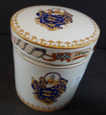 gr. Deckeldose mit Wappenmalerei, wohl Tabaksdose, chines. gemarkt, wohl 19.Jhd., H-16 cm, D-13,5 cm, rote Marke [1]