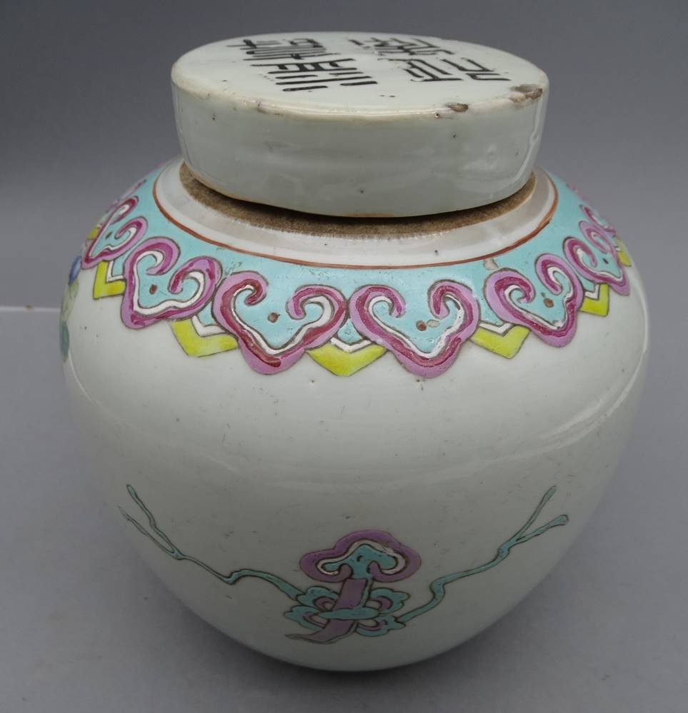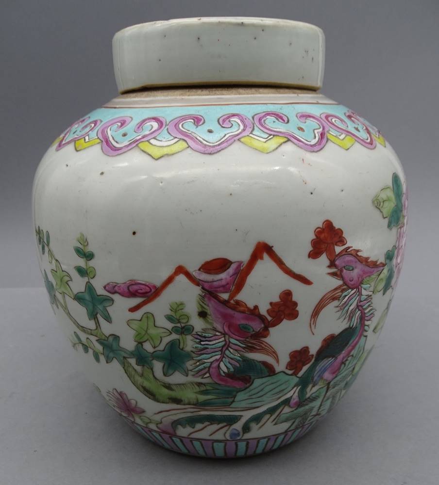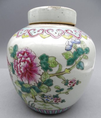 gr. Deckelgefäss mit bunter floraler Malerei, China, Deckel mit Abplatzern, H-21 cm, D-20 cm [1]