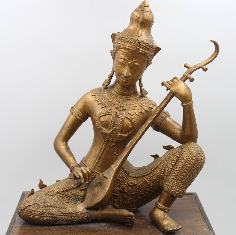 gr. Saraswati-Statue, wohl Bronze, ca. H-37cm B-30,5cm [1]