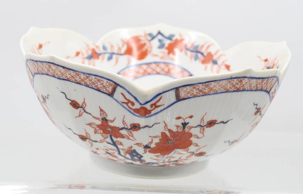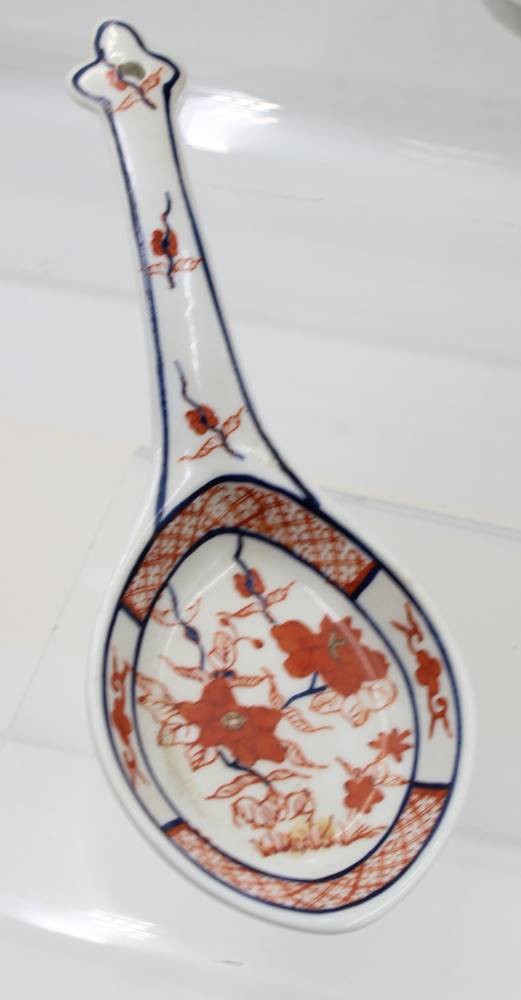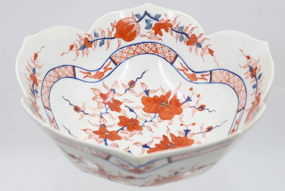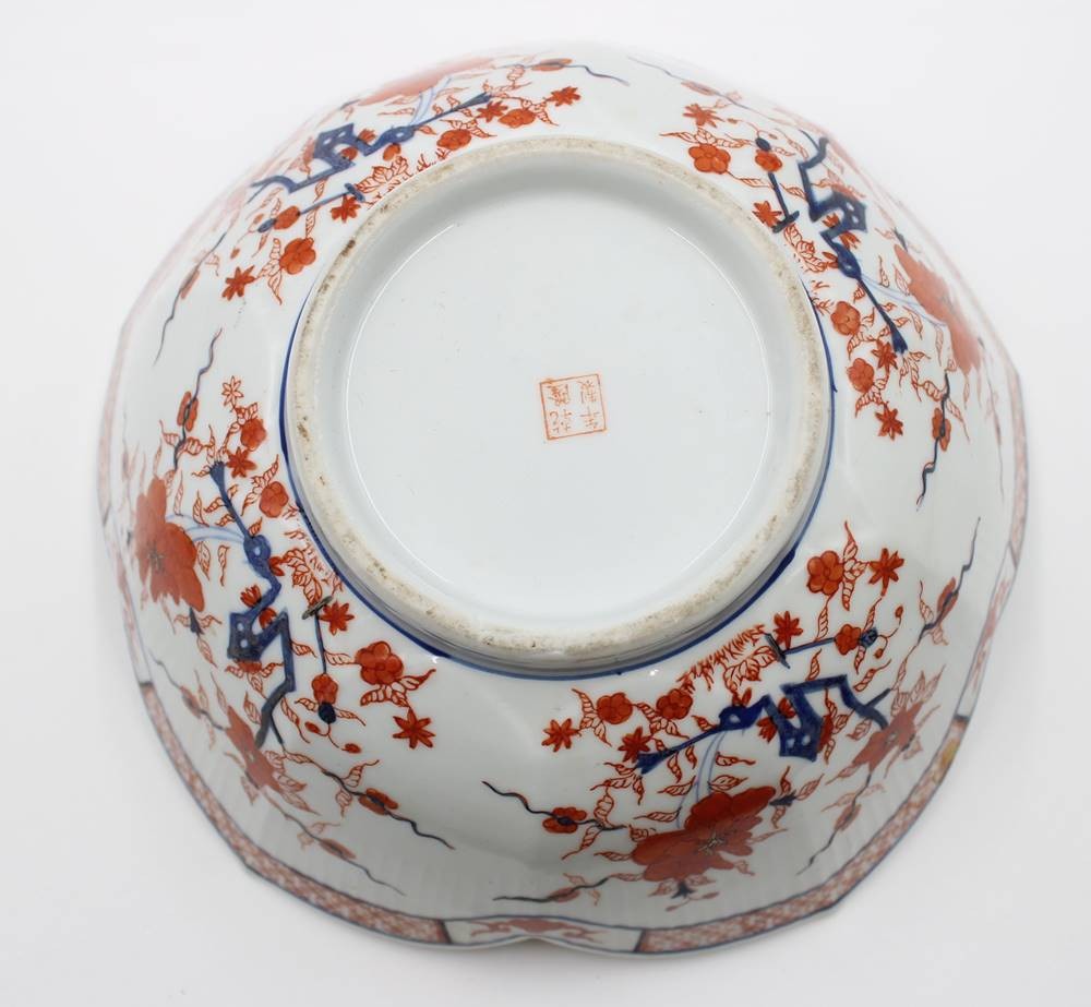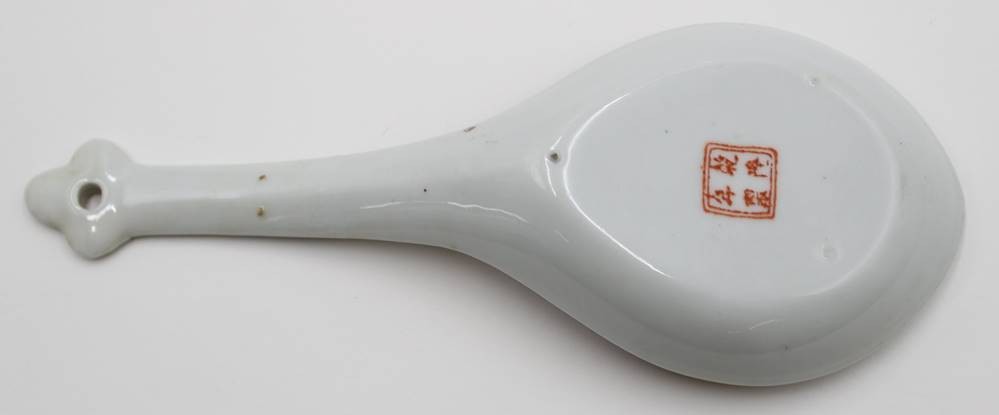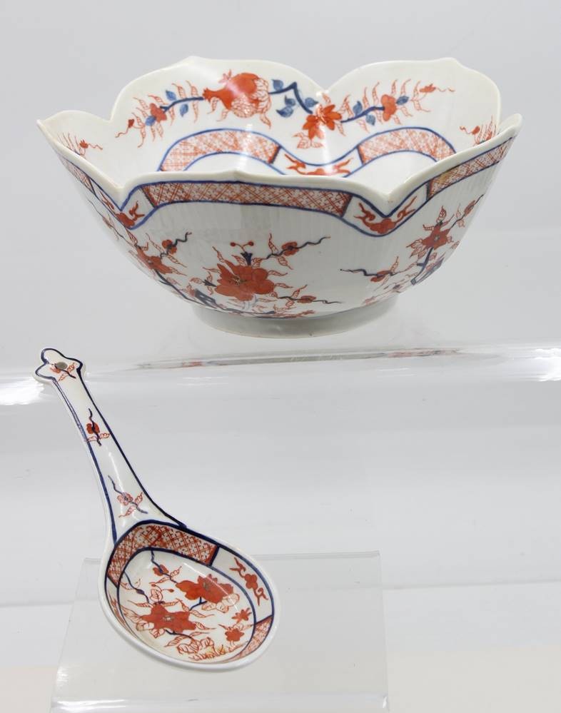 gr. Schale mit passendem Löffel, China, gemarkt, florales Dekor, ca. H-11cm D-24,5cm, Löfffel ca. L-21,5cm [1]