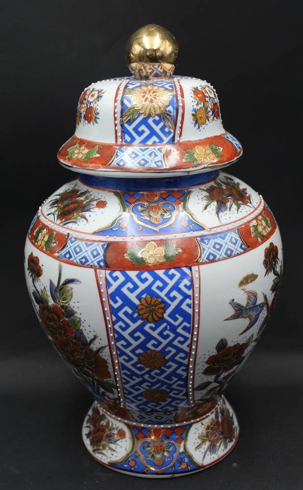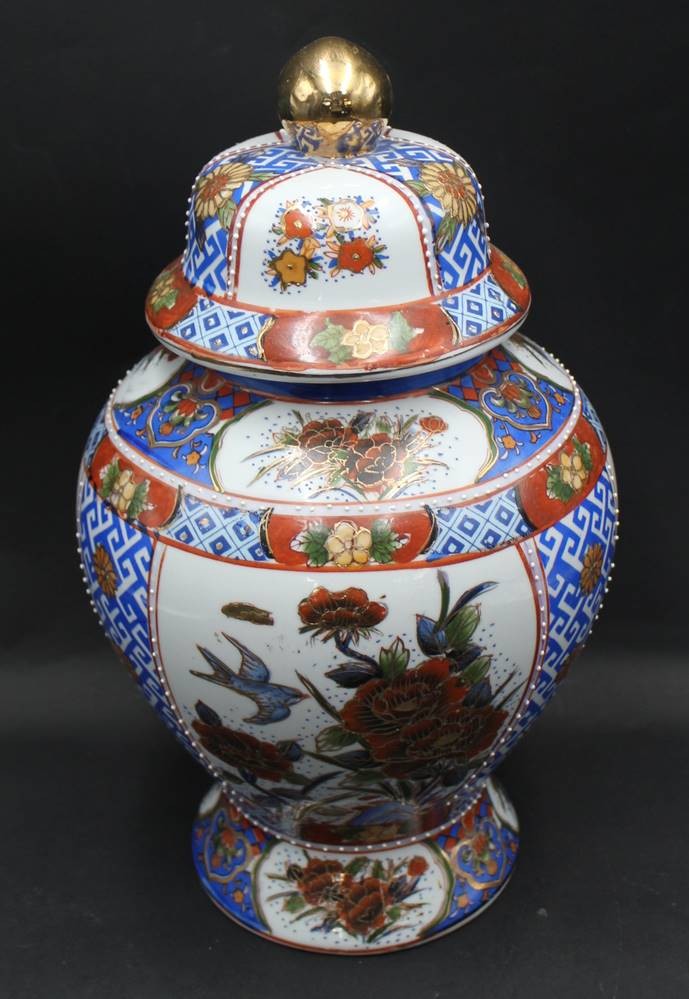grosse Deckelvase, China, im Stil der Mingdynastie, handbemalt, 36 cm [1]