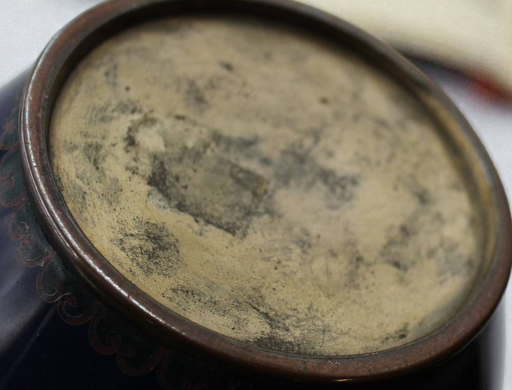 hohe Cloisonné-Vase, Japan, Meji-Zeit, Blumen auf blauem Grund, gute Erhaltung, ca. H-45cm [1]