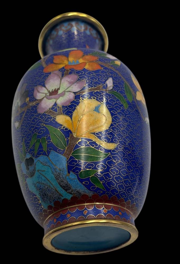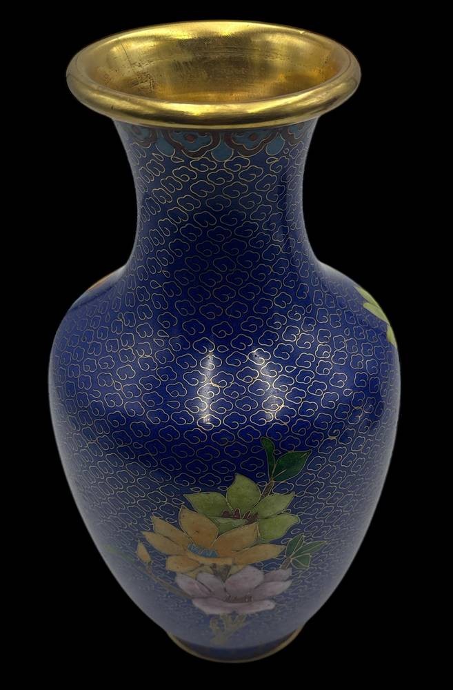 hohe Cloissone Vase, blau mit Blumendekor, H-23 cm, guter Zustand [1]