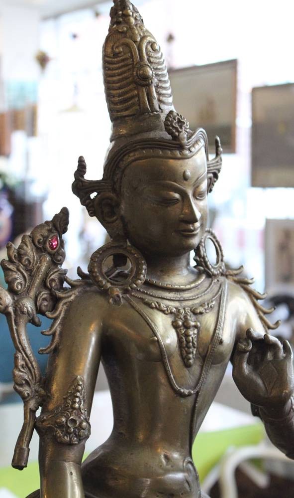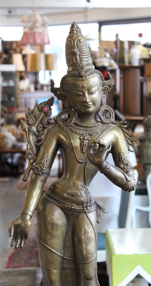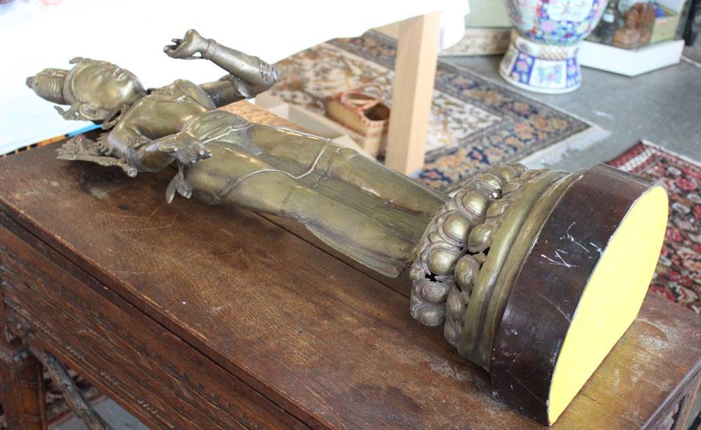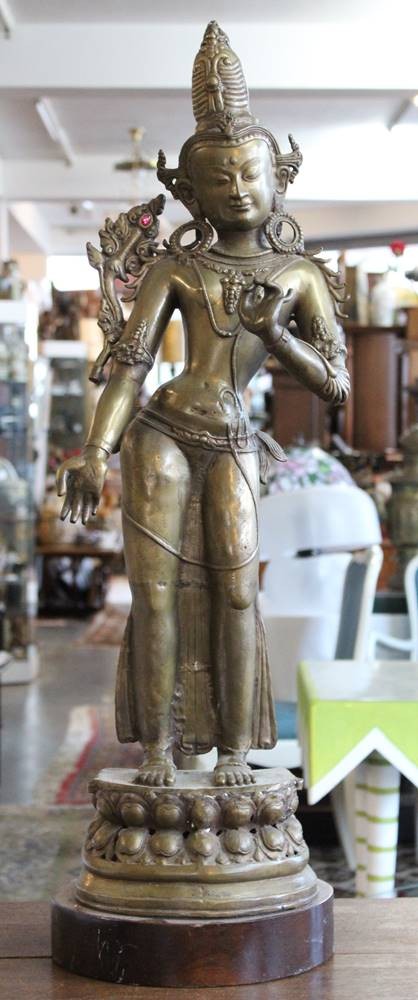 hohe Statue der Tara, Bronze, Holzsockel, ca. H-93cm [1]