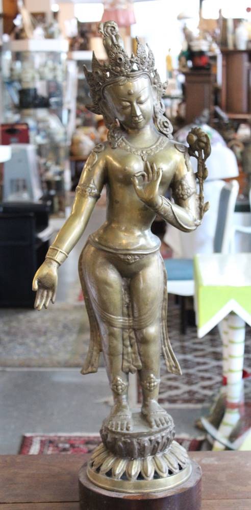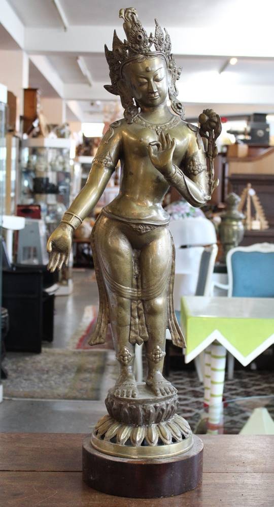 hohe Statue der Tara, Bronze, Holzstand, ca. H-85cm [1]