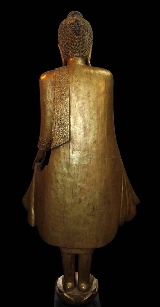 hoher stehender Mandalay Buddha aus Burma, Holz vergoldet und verziert, auf einem Holzsockel stehend, ca. H-218cm, Speditionsversand! [1]