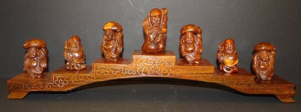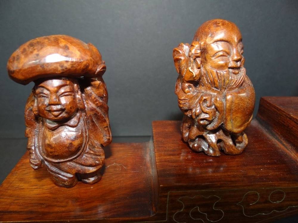 Holzbrücke mit 7 geschnitzten Chinesen, Bogen L-40 cm, Figuren ca. 6 cm [1]