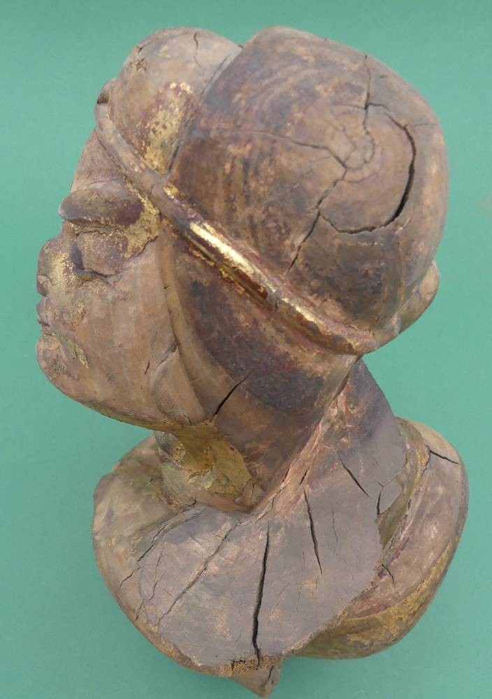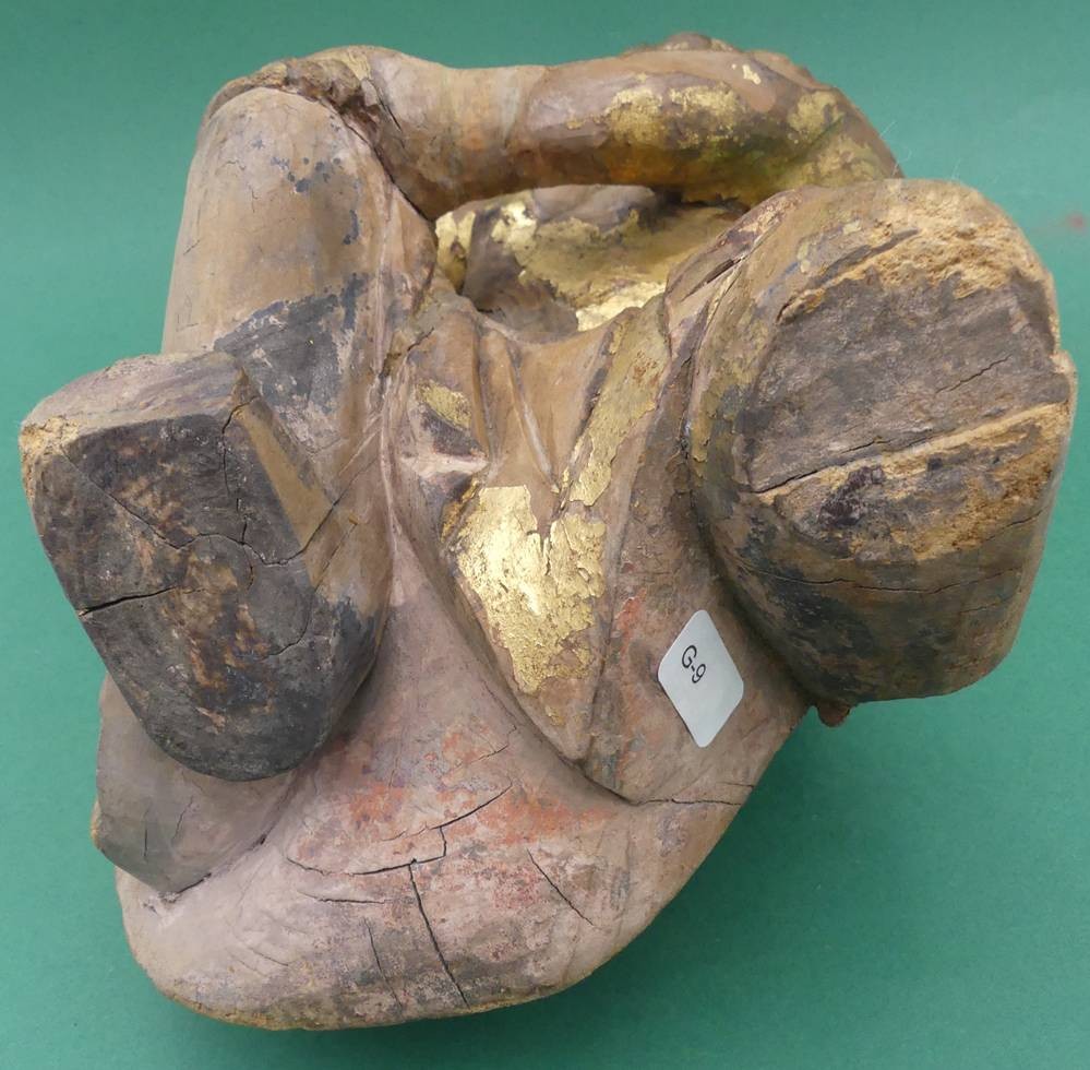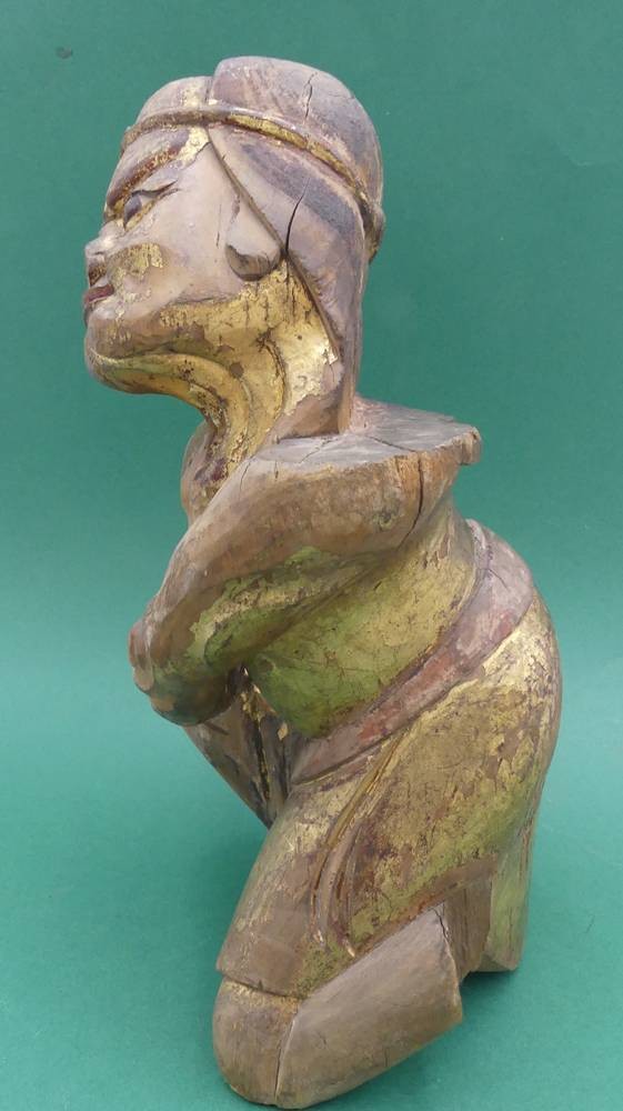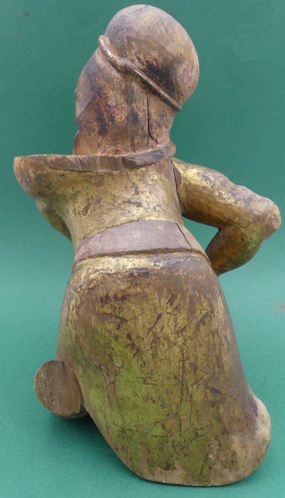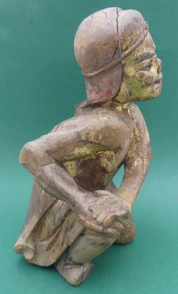 Holzskulptur eines knieenden Asiaten, wohl 18.Jhd.?, Reste alter Fassung und Fehlteile, H-24 cm [1]