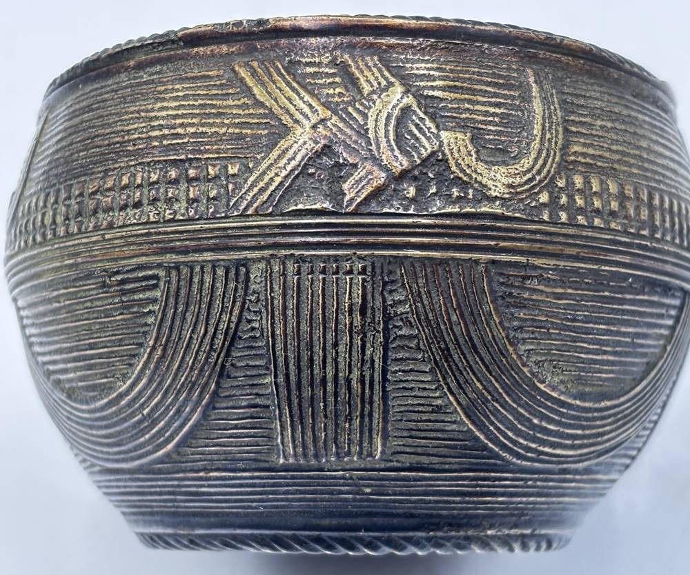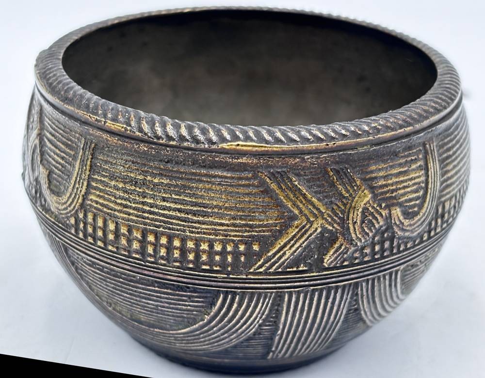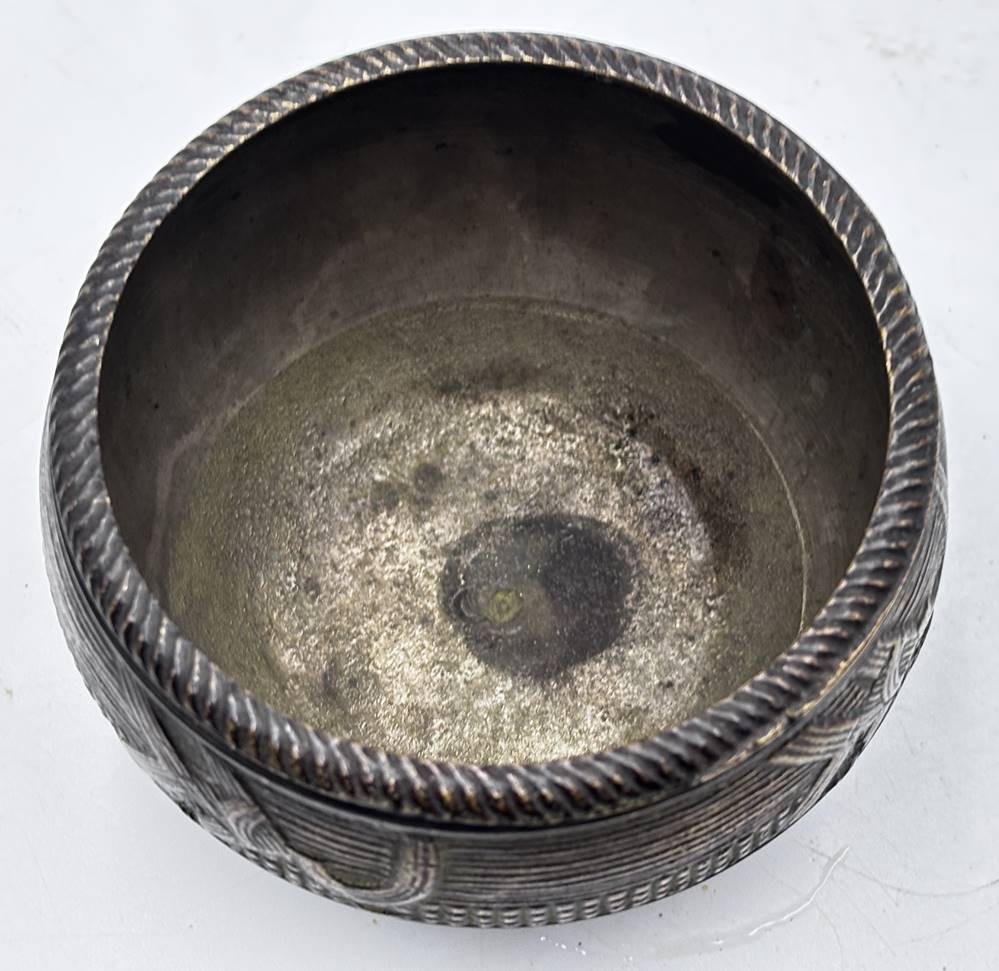 Indische/Tibetanische Opferschale (Dhokra), Bronze, H-7 cm, D-ca. 11 cm, Alter? [1]