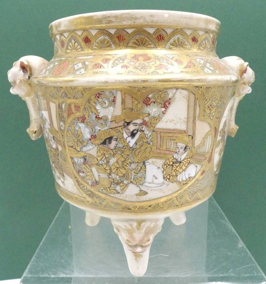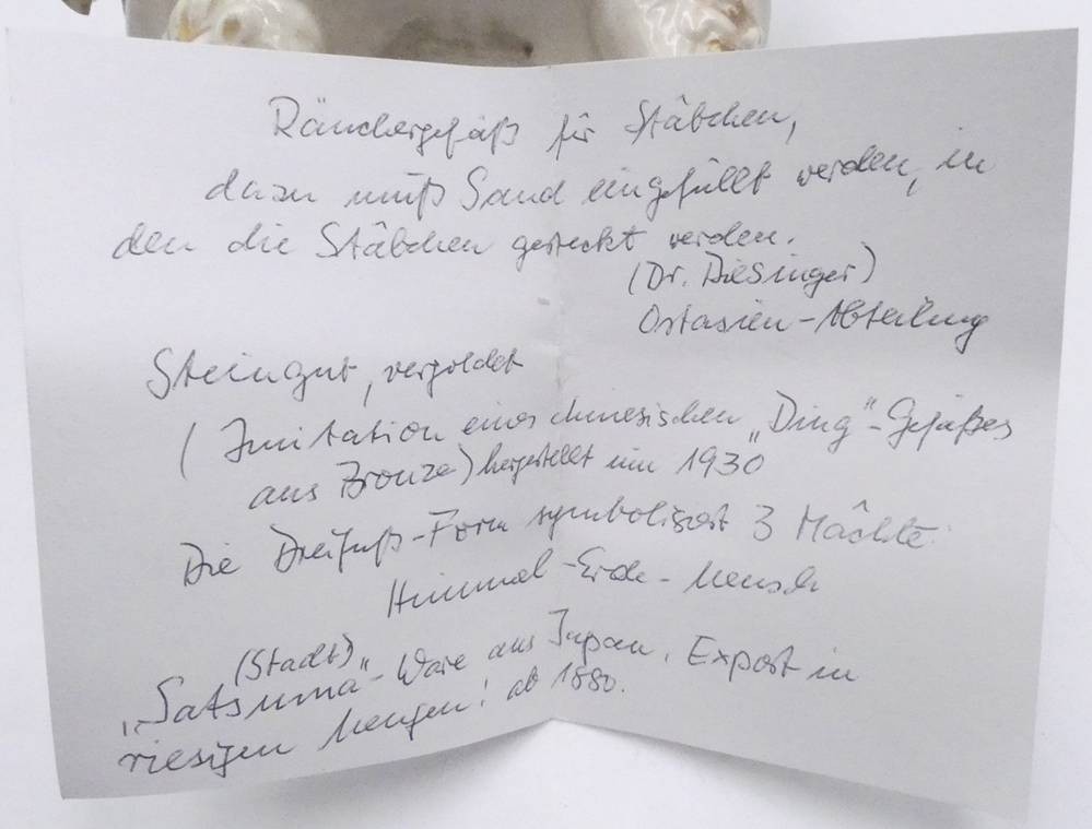 japam. Koro (Räucher) Gefäss, Satsuma, um 1900, anbei Zettel mit genauer Beschreibung, H-16 cm, B-18 cm [1]