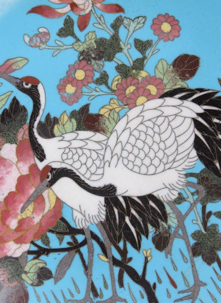 japan. Cloissoné-Teller, Reiher, Meiji-Zeit , D-30,5cm [1]