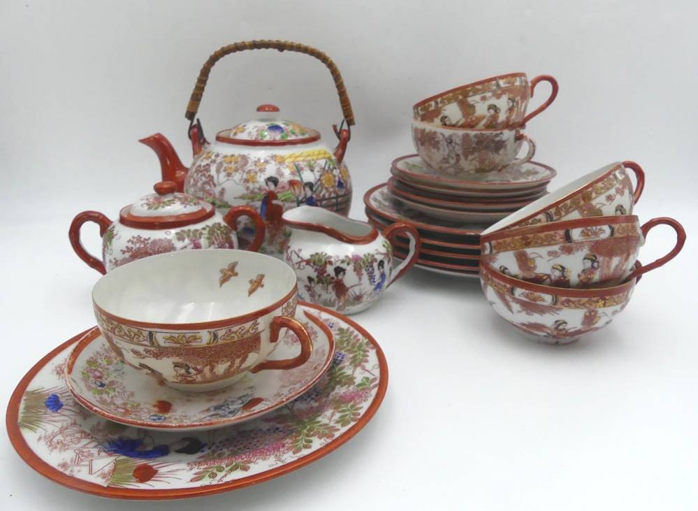 japan. Teeservice für 6 Personen, Tassen mit Geisha-Kopf Lithophanie, 21 Teile [1]