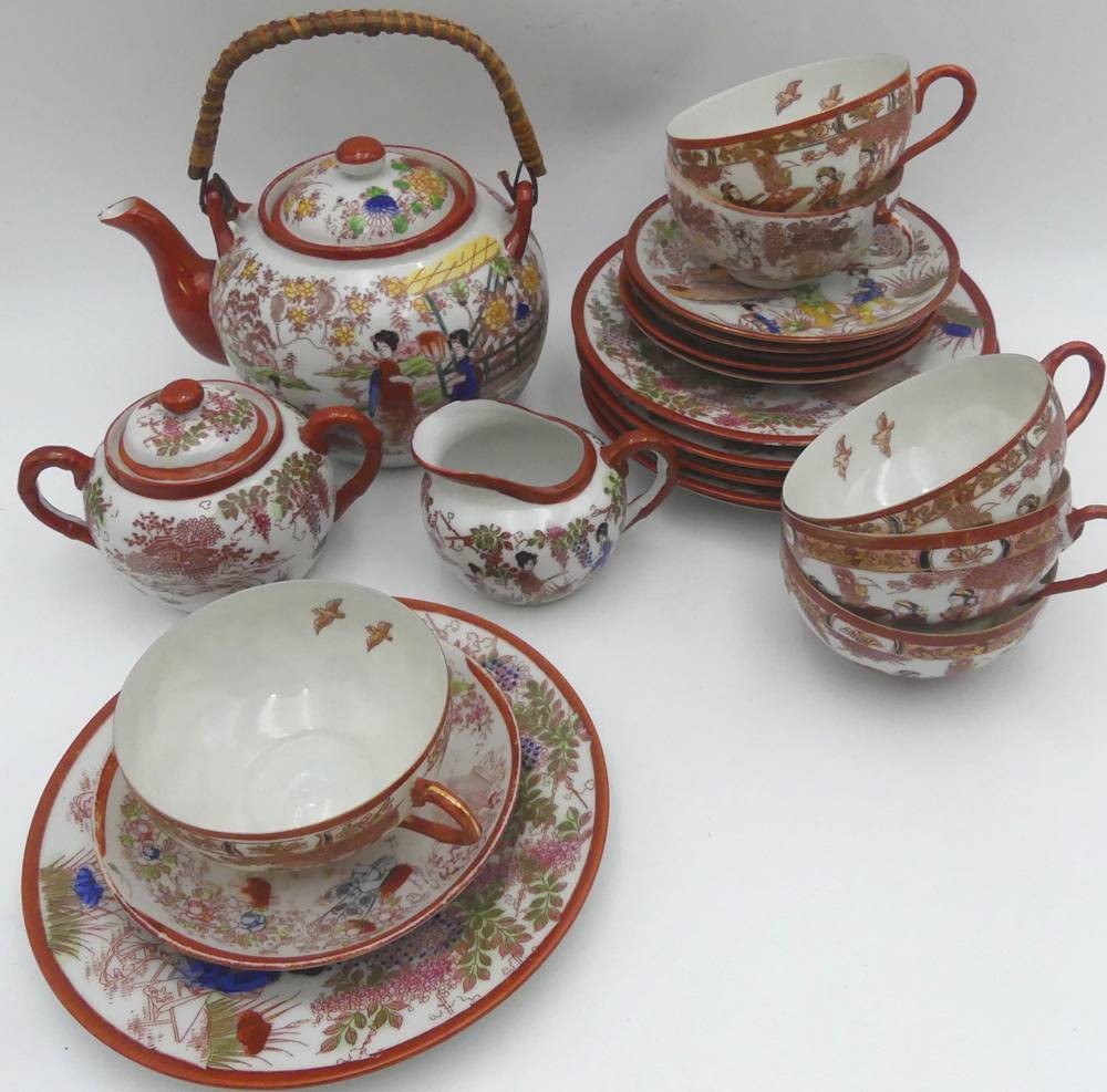 japan. Teeservice für 6 Personen, Tassen mit Geisha-Kopf Lithophanie, 21 Teile