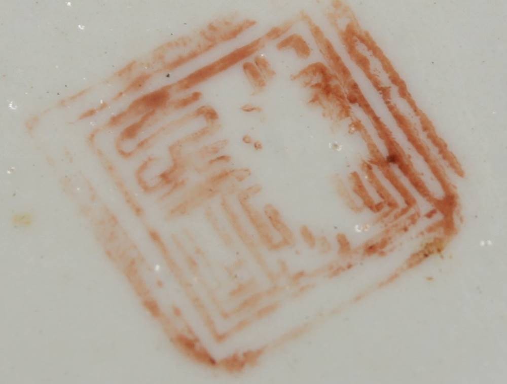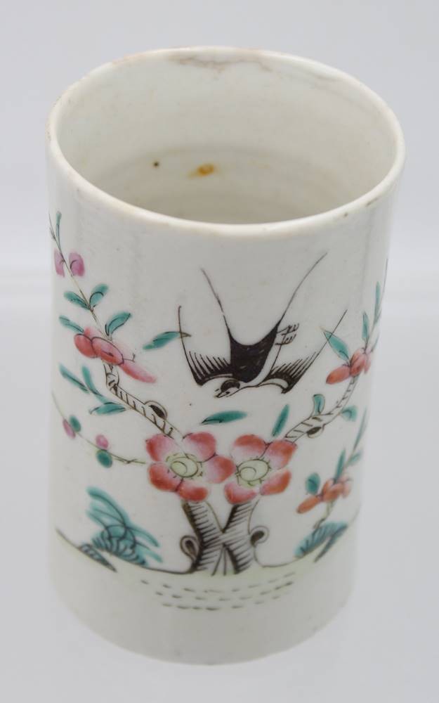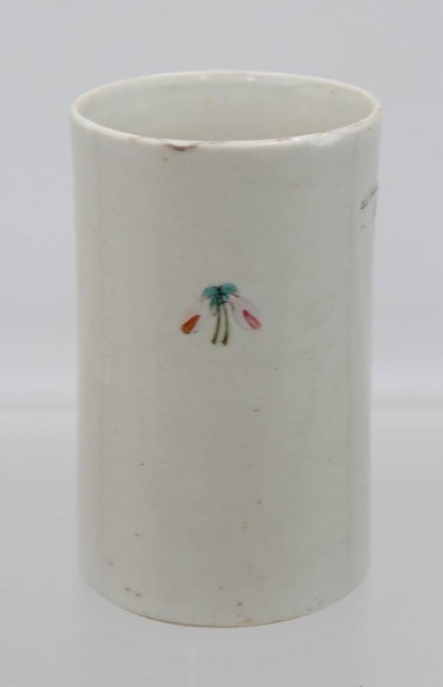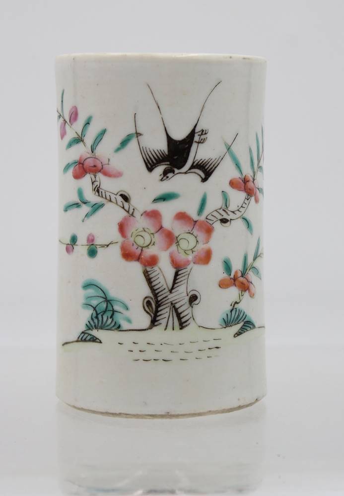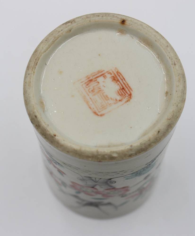 k. antiker Pinselhalter mit Vogel-u. Blumenbemalung sowie Schriftzeichen, rote Marke, ca. H-11cm [1]