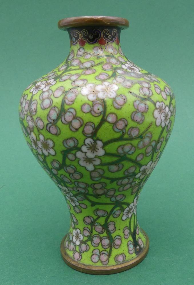 kl. Cloissone Vase mit Kirschblütendekor, H-9,5 cm