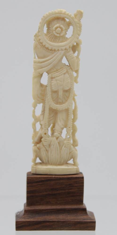 kl. indische Figur einer Gottheit auf Holzsockel, Bein, älter, ca. H-13cm. [1]