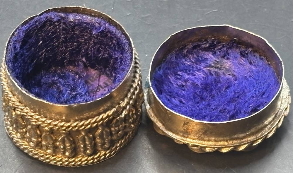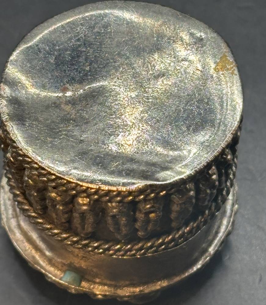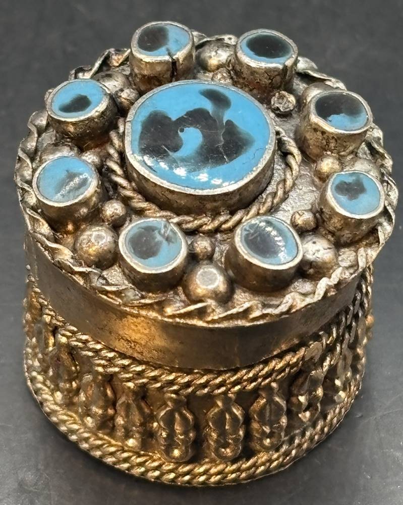 kl. Pillendose oder ähnliches, versilbert, Deckel mit blauer Emaille, Altersspuren [1]