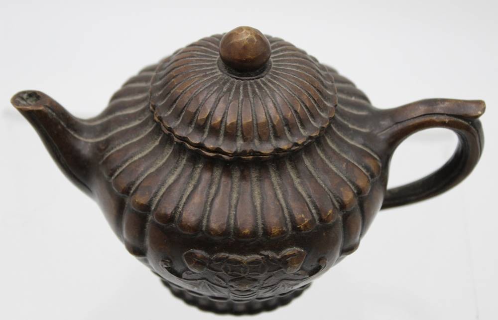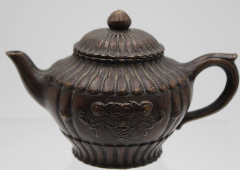 kl. Zierkanne, China, Bronze, Reliefdekor, H-8cm. [1]